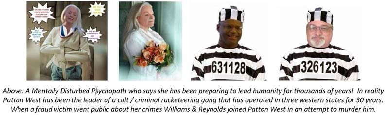 Above: Criminally Insane narcissist Devra Patton West. When one victim of fraud at her hands went public about her criminal past by putting up a website and sharing what he learned with two newspapers, she tried to murder him. When that failed, she employed two senior members of her cult, Dr. Julio E Williams MD & Geoffrey Reynolds CPA, to destroy him financially.