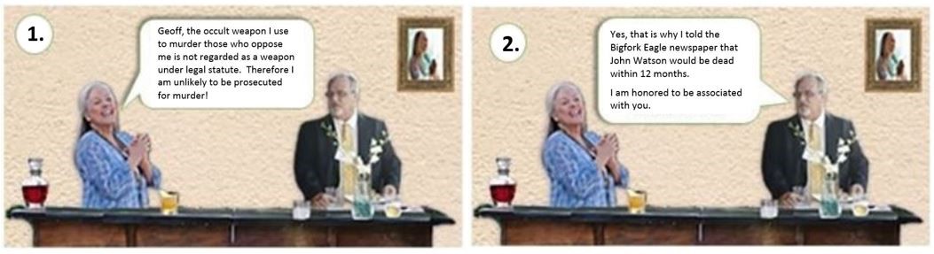 Above: In 2007 Geoffrey Reynolds CPA told a Montana newspaper that John Watson would be dead within 12 months or in jail for reacting to what Patton West was going to do to him and his family. A few days later Patton West made a failed attempt on Watson’s life and commenced a campaign of occult attacks against Watson and his family just as Reynolds predicted.